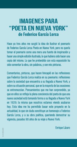 El pintor Enrique Lázaro, afincado en Segovia, ha desarrollado sobre lienzos una singularísima visión del poemario Poeta en Nueva York, de Federico García Lorca.